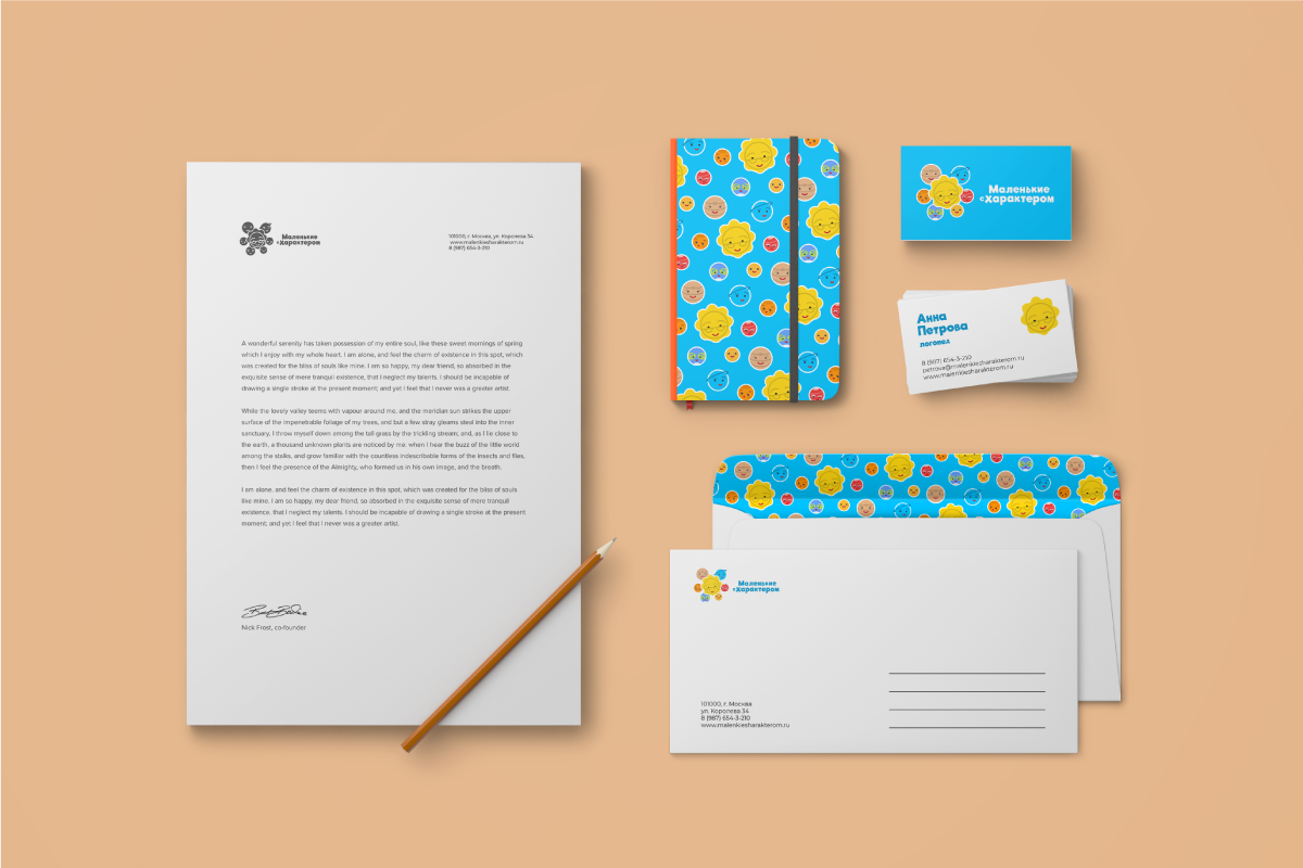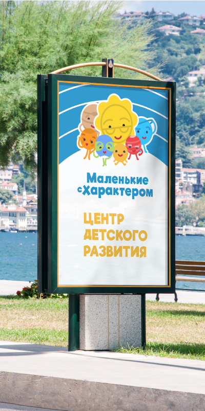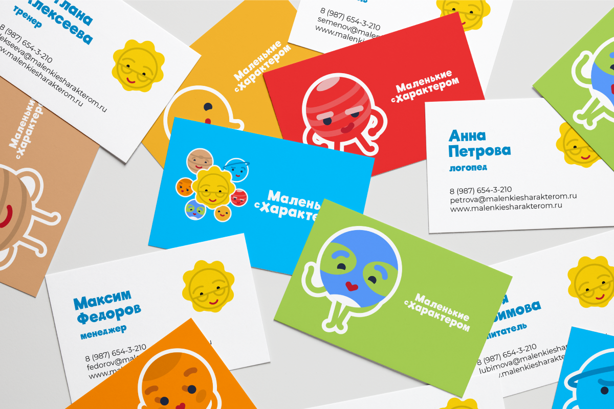 Концепция лого связывает развитие в центре Маленькие с характером с процессом подготовки космонавтов. Мы разработали фирменных персонажей-планет, которые олицетворяют разные направления работы.
